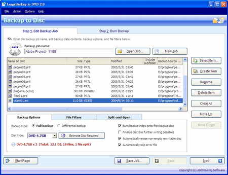 BurnQ Software LargeBackup to DVD v2.0 build 09.007 英文正式版(將大量上G的檔備份到CD和DVD上的工具)