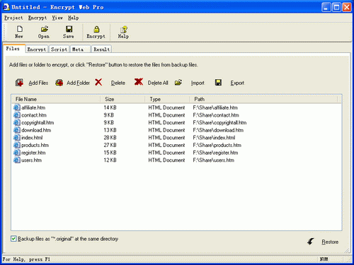 軟體簡介:Encrypt Web Pro能夠加密HTML源碼,保護HTML代碼和網頁。