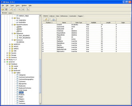色。DB Solo 擁有直觀的用戶介面,能讓你考察和管理資料庫物件,也可執行你自己的 ad-hoc