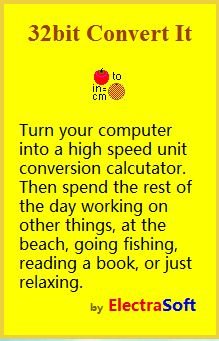 ElectraSoft 32bit Convert It 是個功能齊全的32位元單位轉換器轉換軟體程式。