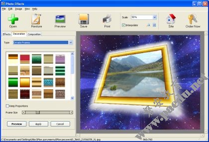 該工具包括大量的古典與現代框的特效。