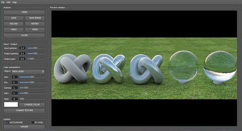 光、顏色和紋理。這些對場景的改變可以影響到反射、折射和GI。這個軟體並不