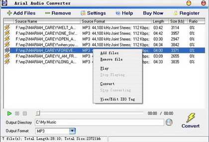 始檔案格式和目標檔格式。 arial audio converter 支援id3標籤顯示和編輯,它可