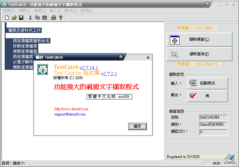 Text Catch 2.7.14.1(視窗文字擷取) 繁體中文化安裝註冊版