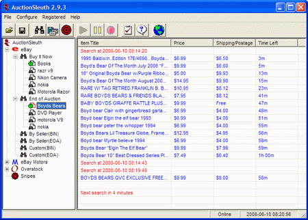 Motors and Overstock.com auctions. AuctionSleuth includes both automated searching