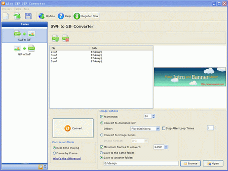 Aleo SWF GIF Converter一款互相轉換SWF和GIF的軟體。可以讓你快速而又簡單的完成SWF