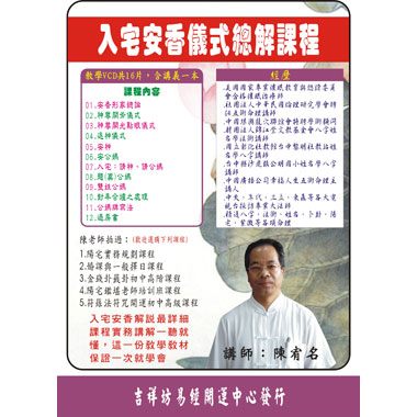 軟體名稱:陳宥名老師 入宅安香儀式總解課程 (入宅安香解說最詳細 課程實務講解一聽就懂 這一份教學教材保證一次就學會) 繁體中文教學版 (DVD3片裝)