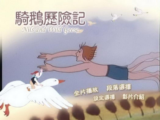 尼爾斯為了不讓牠飛走,因而緊緊抱住牠的脖子,不料卻因此與毛幀一同展開這